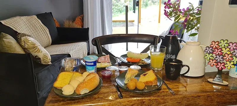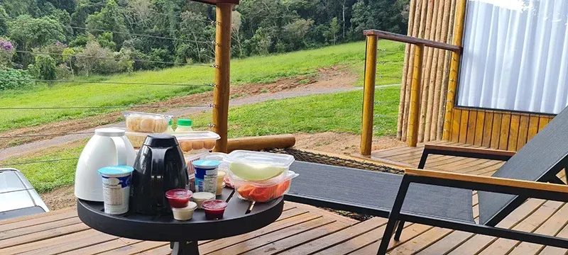 Desfrute de nosso delicioso café da manhã, entregue em seu domo. Nossa cesta inclui suco, café fresco, pães artesanais, bolo do dia, salgados, queijos, frutas frescas e demais produtos locais. Personalize sua reserva adicionando este serviço especial.